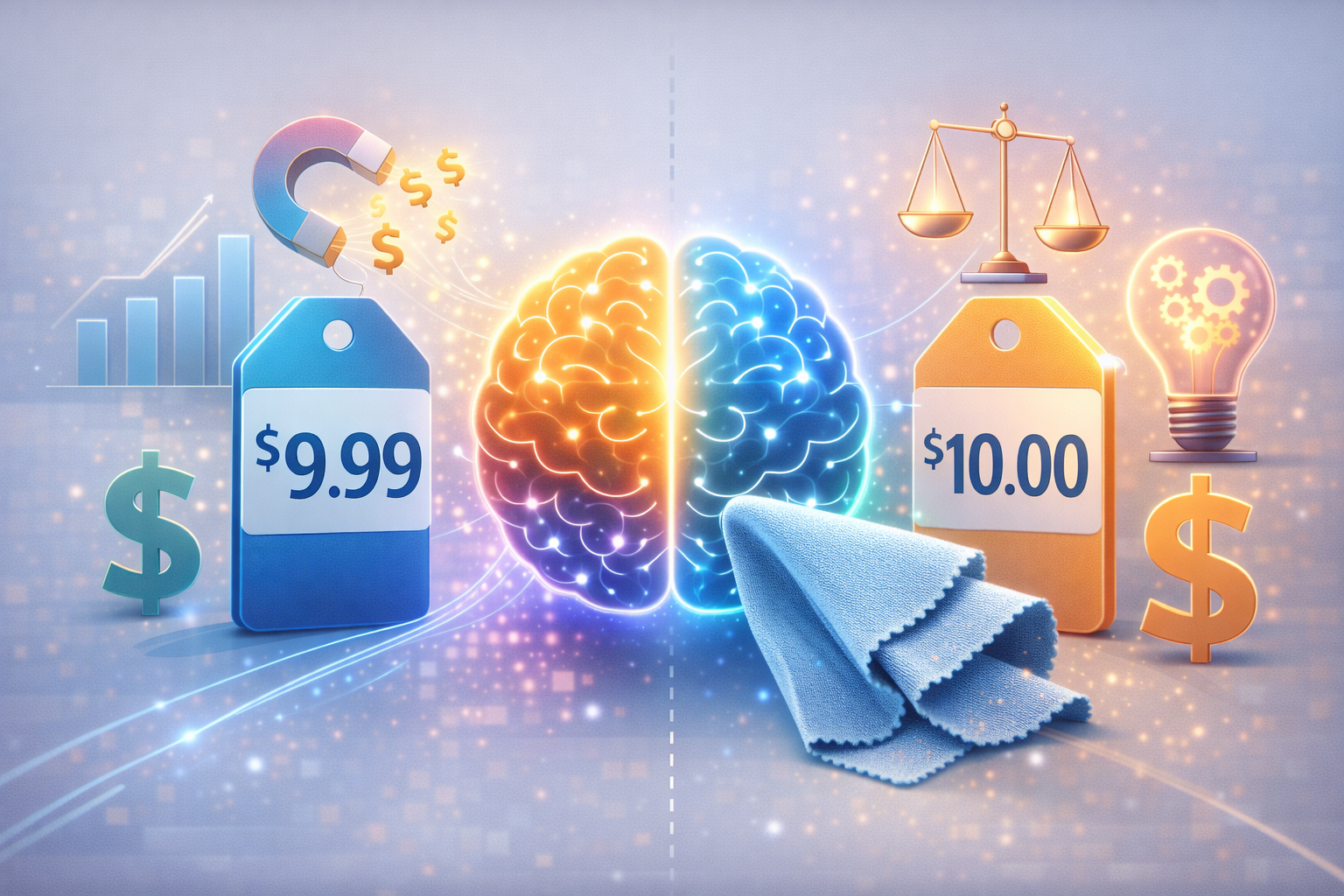 9,900원과 같은 단수 가격 책정은 뇌가 숫자의 앞자리를 먼저 인지하는 특성을 이용해 실제보다 저렴하다는 착시를 일으키며, 가격 결정에 대한 신뢰도를 높여 구매 저항감을 낮추는 고도의 마케팅 심리학 전략입니다.