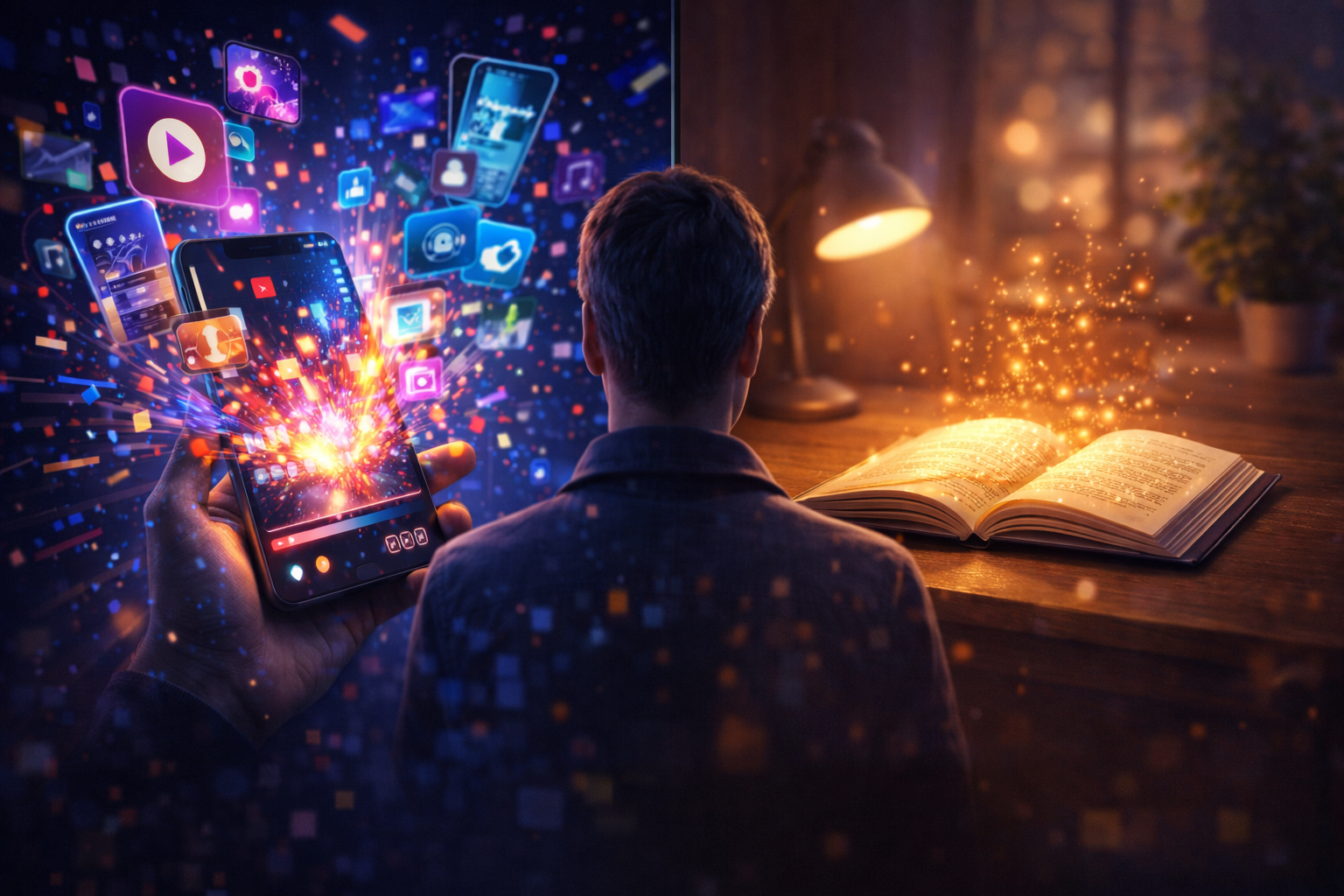 우리는 지금 1분 내외의 짧은 영상이 지배하는 숏폼의 홍수 속에 살고 있습니다. 출퇴근길 지하철에서, 잠들기 전 침대 위에서 끝없이 위로 넘기는 손가락은 우리 뇌에 실시간으로 강력한 도파민을 주입하죠. 빠르고 강렬한 자극에 익숙해진 현대인의 뇌는 이제 긴 글을 읽거나 호흡이 긴 영상을 시청하는 데 어려움을 느끼기 시작했습니다. 하지만 아이러니하게도 이러한 디지털 과잉 상태가 지속되면서, 최근 대중들 사이에서는 '가벼움'에 지친 마음을 '깊이'로 채우려는 역설적인 움직임이 포착되고 있습니다.