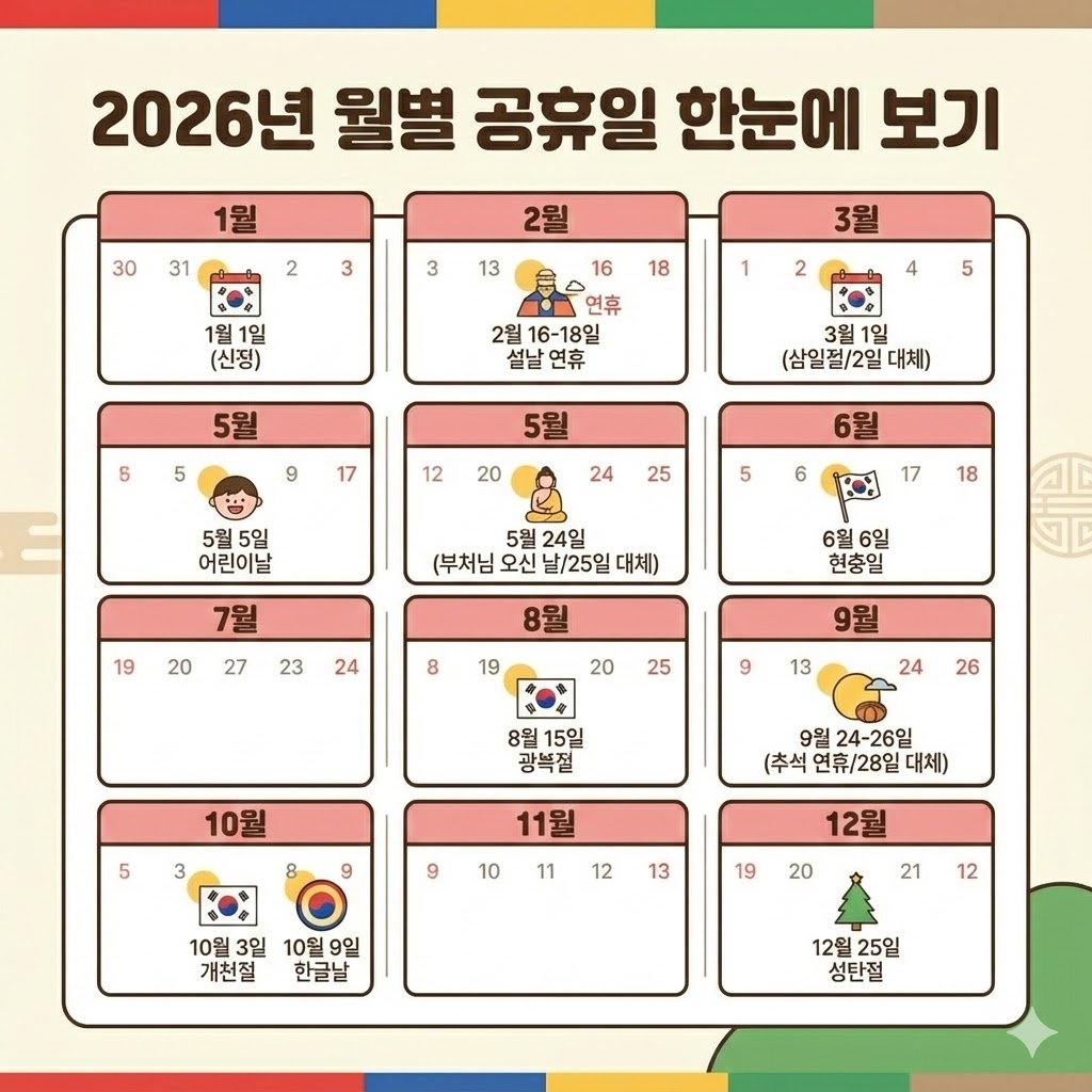📅 2026년 월별 공휴일 한눈에 보기